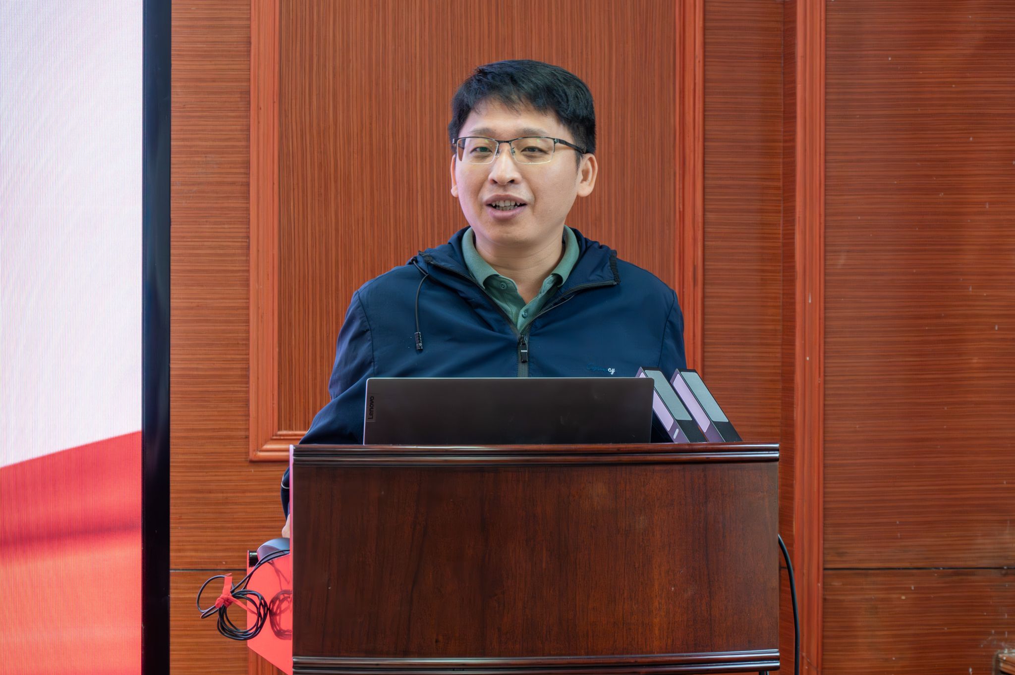 活动的最后,2001级辅导员李春林老师讲话。他表示,与各位校友再次欢聚一堂,昔日情谊丝毫未减。看到大家已在各行各业成长为中流砥柱,他感到无比自豪。李老师强调,母校永远是精神家园,祝愿大家在各自岗位上为国家做出更大贡献。