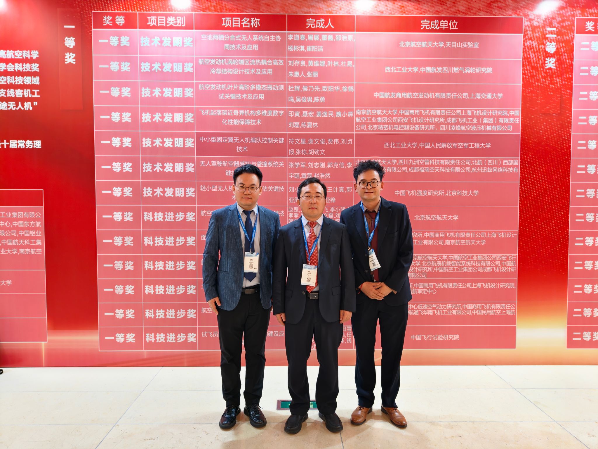 中国航空学会技术发明奖一等奖